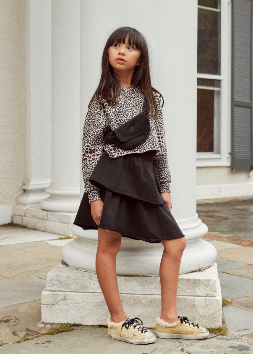 The eye-catching leopard print design adds a touch of wild charm to this sweatshirt, making it a standout piece in any outfit. The crew neck and cropped oversize silhouette give it a modern and fashion-forward look, perfect for the stylish little ones.