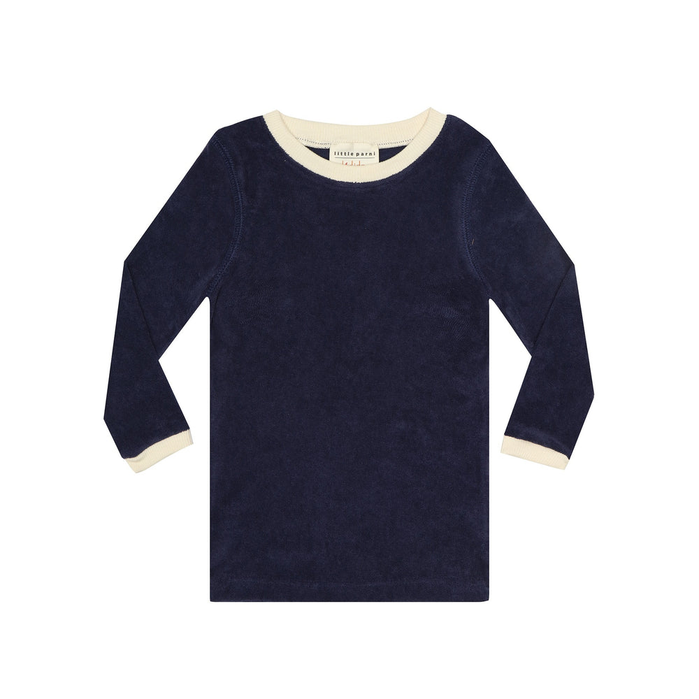 Introducing the Soft Terry Long Sleeve Kids Tee x Ladida - the perfect addition to your child's summer wardrobe. Made from premium terry material, this tee is ultra-soft and comfortable, ensuring your child stays cool and comfortable on hot summer days. The long sleeves provide added sun protection, making it an ideal choice for outdoor activities. The classic design features a navy body, a simple off-white crew neckline, and a fitted body, making it easy to pair with other pieces or wear on its own. The soft texture and breathable fabric of this tee make it suitable for any summer occasion, whether your child is playing at the beach, attending a casual event, or simply lounging at home.