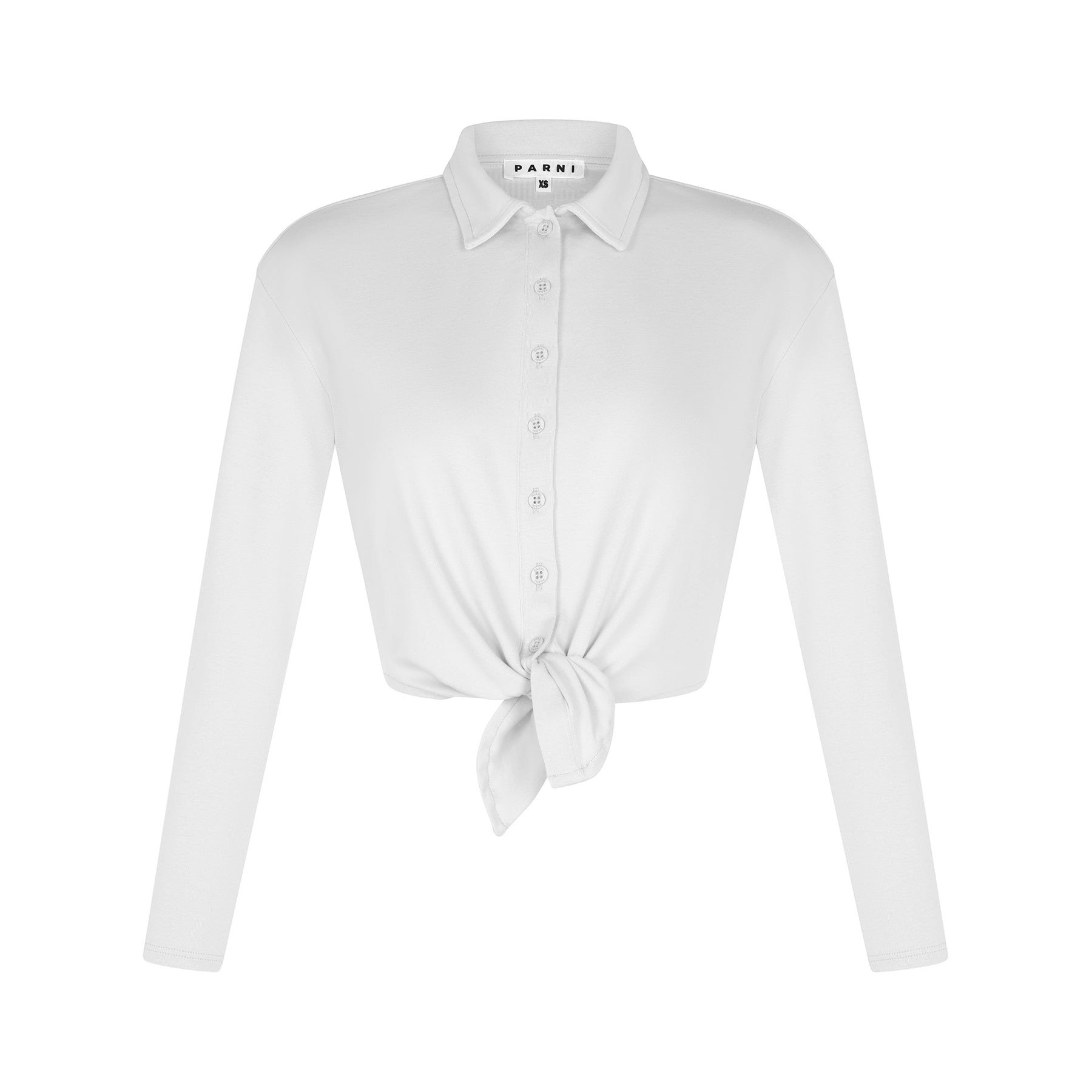 Elevate your wardrobe with our polished Tie Front Button Down Shirt, bringing a refined twist to the classic button-down. Featuring a point collar and button-front closures, this shirt exudes timeless sophistication with a modern edge. The button-down front placket adds to its polished look, while the cropped length and pointed collar offer a fresh silhouette.